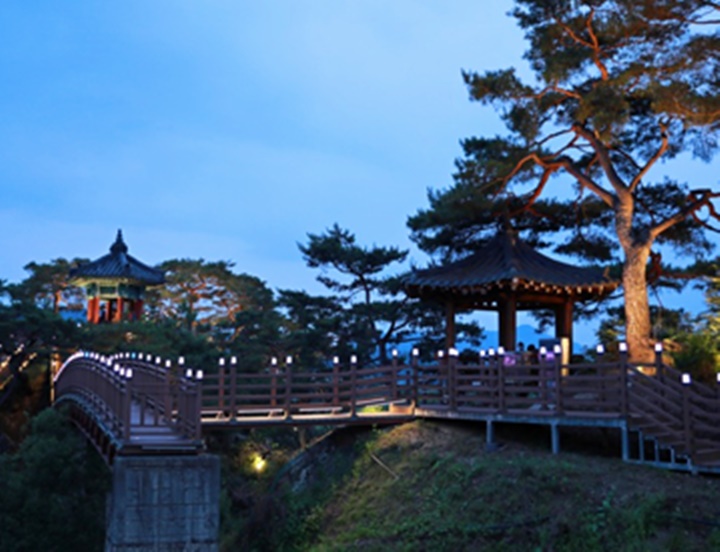 저녁에 강선대를 방문하면 아름다운 조명이 더해져 야경을 감상하기에 좋은 분위기가 연출되는데요. 주변에는 와인터널, 월류봉, 난계 국악박물관 등이 있어 여행코스로 활용하기에 좋은 장소입니다.